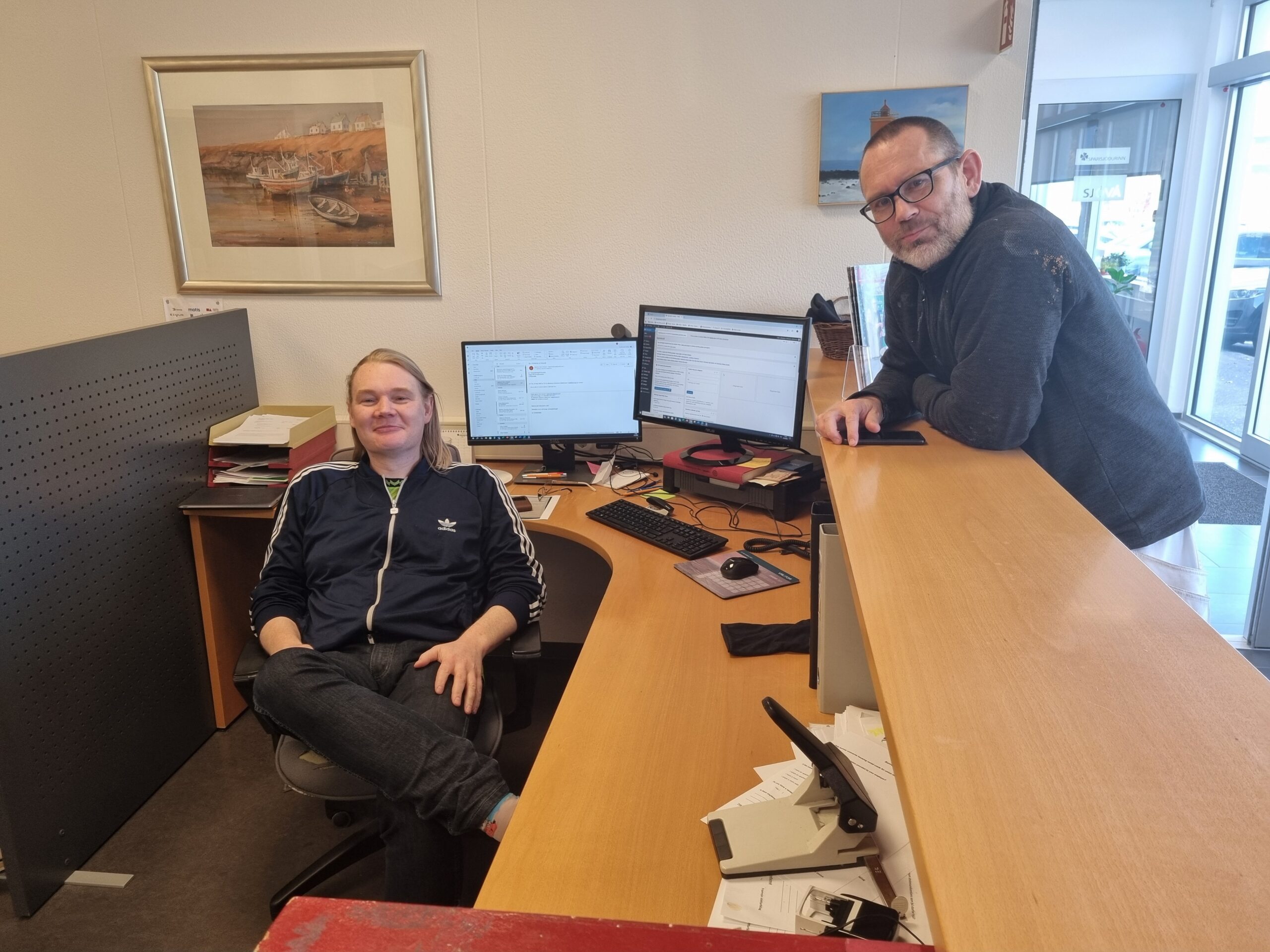 Okkar besti maður, Björgvin Sigurðsson, söngvari Skálmaldar leit við á Skrifstofu stéttarfélaganna en hann er félagsmaður í Framsýn eins og margir aðrir góðir tónlistarmenn enda best að vera í Framsýn. Þar hitti hann fyrir Alla starfsmann stéttarfélaganna sem er mikill aðdáandi Skálmaldar og þungarokks almennt enda fer hann reglulega á tónleika þar sem bestu þungrokkshljómsveitir heims koma fram. Ekki er ólíklegt að þeir hafi verið að tala um þungarokk í stað þess að tala um verkalýðsmál þegar myndin var tekin. Í það minnsta eru þeir hressir að sjá.