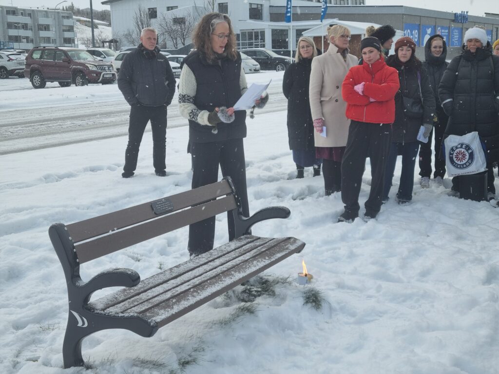 Á aðalfundi Framsýnar í vor var ákveðið að minnast kvennaársins 2025 með gjöf á 5 sætisbekkjum sem komið yrði fyrir í núverandi og þáverandi sjávarbyggðum á félagssvæðinu. Það var við hæfi að fyrsti bekkurinn væri vígður formlega á Kvennafrídaginn en bekknum var komið fyrir á Stangarbakkanum í morgun og fór vígslan fram kl. 11:00. Fjöldi fólks lagði leið sína á viðburðinn en um 60 konur voru við vígsluna en þær höfðu flestar fyrr um morguninn lagt niður störf í Borgarhólsskóla. Formaður Framsýnar, Aðalsteinn Árni, fór nokkrum orðum um gjöfina og sagði að bekkirnir væru gefnir í tilefni Kvenréttindadagsins þann 19. júní, af virðingu við konur sem misst hefðu ástvini sína í greipar Ægis. Hann sagði jafnframt yndislegt að sjá þann fjölda sem væri samankominn til þessarar samverustundar. Því næst flutti Ósk Helgadóttir varaformaður stutt ávarp sem er svohljóðandi: