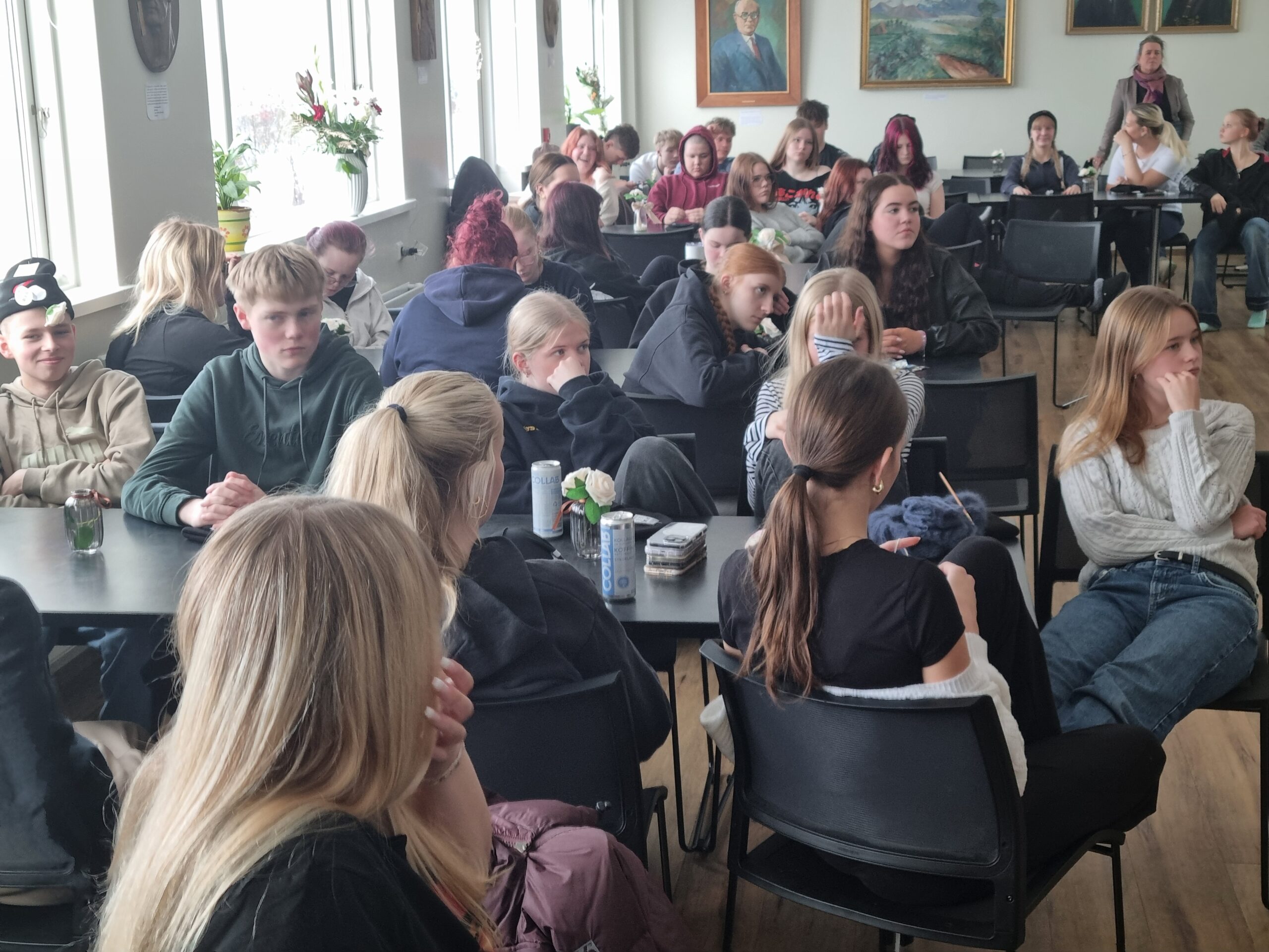 Forsvarsmenn Framsýnar og Lsj. Stapa voru beðnir um að vera með almenna fræðslu um starfsemi stéttarfélaga og lífeyrissjóða fyrir nemendur Framhaldsskólans á Laugum. Fræðslan fór fram í mötuneyti skólans í gær. Nemendur voru mjög áhugasamir um viðfangsefni dagsins. Þá voru lagðar nokkrar spurningar fyrir nemendur í lok fræðslunnar sem þeir svöruðu samviskusamlega auk þess sem nemendum var ætlað að vinna verkefni eftir fyrirlesturinn um starfsemi Framsýnar.