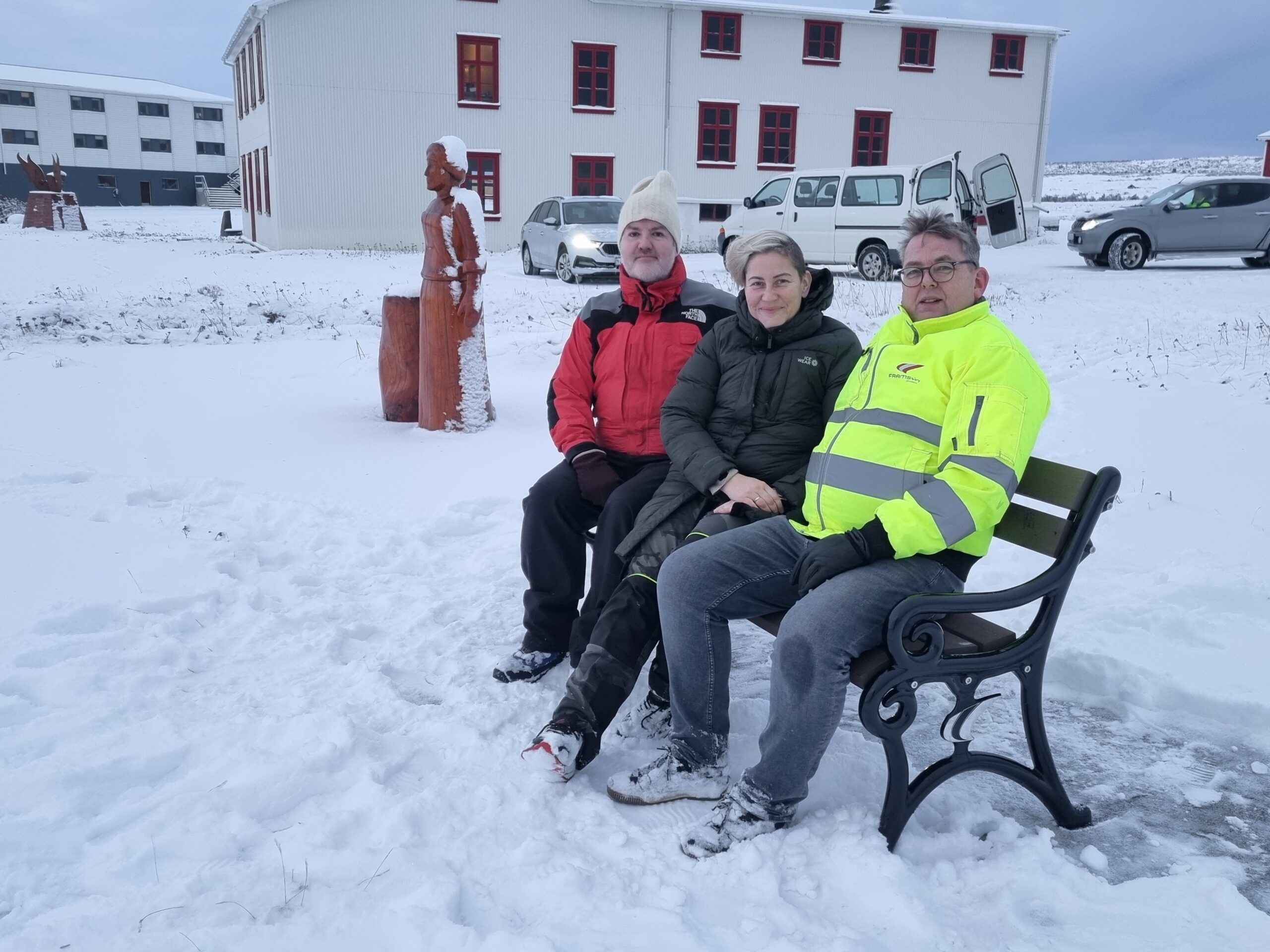 Starfsmenn SSNE og Norðurþings, þau Nanna Steina Höskuldsdóttir og Einar Ingi Einarsson hjálpuðu starfsmönnum Framsýnar við að ganga frá bekknum á Raufarhöfn en þar verður hann við listaverkið Síldarstúlkuna við höfnina. Á Meðfylgjandi mynd má sjá Nönnu og Einar Inga á bekknum ásamt formanni Framsýnar, Aðalsteini Árna. Nanna og Einar Ingi þökkuðu Framsýn kærlega fyrir gjöfina. Ekki tókst að ganga endanlega frá bekknum á Kópaskeri þar sem finna þarf honum stað svo hann njóti sín sem best. Heimamenn á Kópaskeri tóku að sér að finna viðeigandi stað fyrir bekkinn. Síðan á eftir að koma fyrir bekkjum í Flatey á Skjálfanda og í Túngulendingu á Tjörnesi. Það verður gert við fyrsta tækifæri.