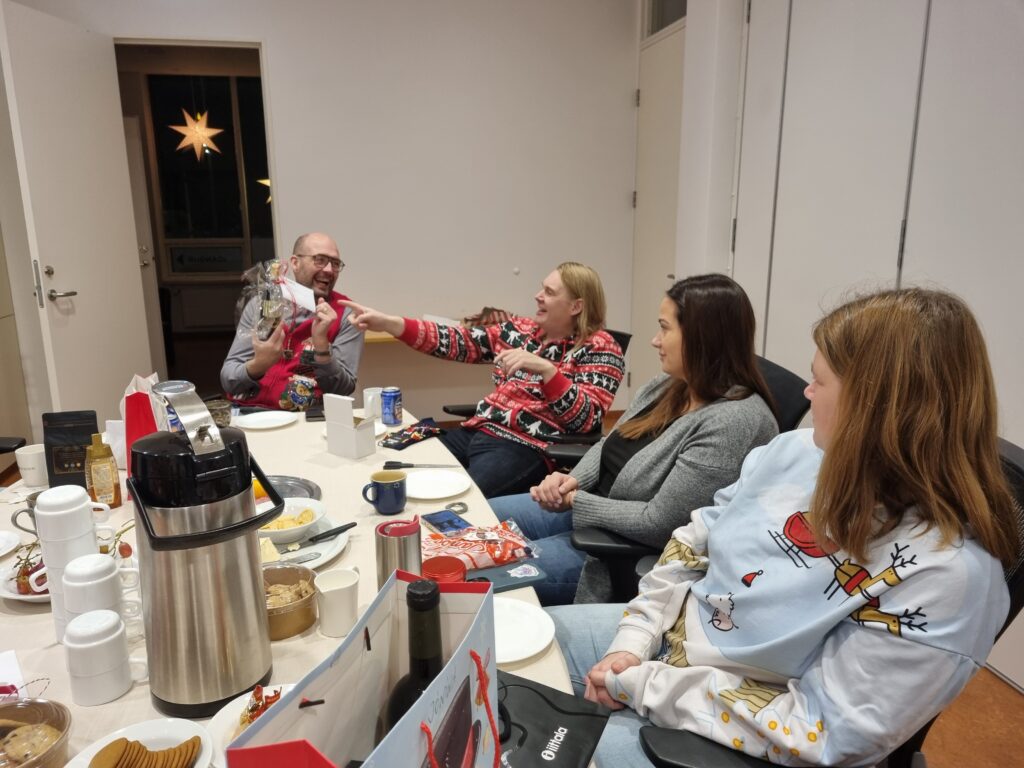 Starfsfólkið sem starfar í húsnæði stéttarfélaganna að Garðarsbraut 26 gerði sér dagamun í morgun í tilefni af því að undanfarna daga hefur staðið yfir jólaleikur meðal starfsmanna. Í morgun var komið að því að finna út hver væri leynivinur hvers og eins. Það gekk misvel eins og gengur og gerist en viðburðurinn var virkilega skemmtilegur enda allir starfsmenn ánægðir með gjafirnar og hvernig tiltókst með jólaleikinn sem var jú tilgangurinn.
