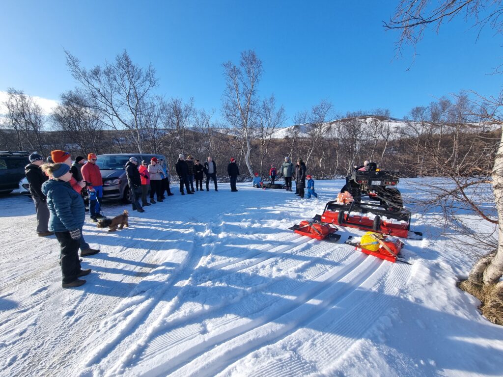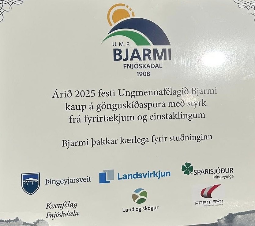 Nýr skíðagönguspori var vígður í Vaglaskógi í gær á árlegum fjölskyldudegi UMF Bjarma. Félagið fjárfesti nýverið í sporanum ásamt beltabúnaði og tönn, sem verður sett undir nýtt sexhjól Lands og Skóga. Búnaður af þessu tagi kostar nokkrar milljónir, sem er ansi stór biti fyrir lítið ungmennafélag. Réðst Bjarmi því í fjársöfnun á nýliðnu ári, og lögðu fjölmargir einstaklingar, fyrirtæki og félagasamtök söfnuninni lið. Land og Skógur, sem hefur yfirumsjón með Vaglaskógi kemur til með að sjá um sporann, troða brautir, grisja og huga að öðru því sem tryggir að allar aðstæður verði til fyrirmyndar. Nýi búnaðurinn er afar kærkominn og mun gjörbreyta aðstöðu fyrir skíðagöngufólk og annað útivistarfólk  sem sækir skóginn heim yfir vetrartímann. Framsýn var meðal þeirra sem lögðu söfnuninni lið og vill félagið með því móti efla starfsemi Ungmennafélagsins Bjarma, sem gegnir líkt og önnur ungmennafélög mikilvægu hlutverki í sínu byggðarlagi. Meðfylgjandi myndir voru teknir í veðurblíðunni í Fnjóskadal í gær þar sem fjölmörg mættu í skóginn til að fagna nýja skíðagöngusporanum og gæða sér á gómsætum veitingum í boði Bjarma. Þar  á meðal fulltrúar frá Framsýn var var sérstaklega boðið að vera við vígsluna. Hægt er að nálgast fréttir af sporunum með því að fylgja Skíðagöngubrautir í Vaglaskógi á facebook. Á meðfylgjandi forsíðumynd eru Aðalsteinn Árni Baldursson og Ósk Helgadóttir frá Framsýn og Úla Áradal, Sigríður Árdal og Karl Magnússon frá Umf. Bjarma.