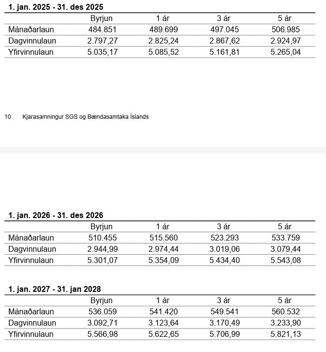 Gildir fyrir fiskvinnslufólk, iðnverkafólk, hafnaverkamenn, verkamenn við sauðfjárslátrun, byggingaverkamenn, bensínafgreiðslufólk, bifreiða- og tækjastjórnendur og almennt verkafólk.